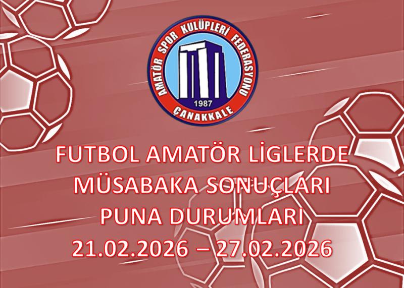 FUTBOL AMATÖR LİGLERDE MÜSABAKA SONUÇLARI PUAN DURUMLARI / 21.02.2026 – 27.02.2026 21 Şubat 2026 Cumartesi, 22 Şubat 2026 Pazar ve 25 Şubat 2026 Çarşamba günleri oynanan Amatör Lig Müsabakalarında alınan sonuçlar ve puan durumları şöyle; Amatör Ligler Müsabaka Sonuçları için tıklayınız Amatör Ligler Toplu Puan Durumları için tıklayınız