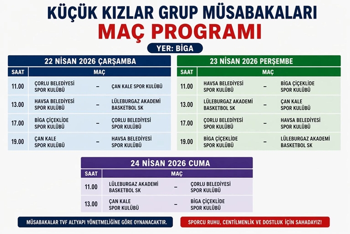 22-24 Nisan 2026 tarihleri arasında gerçekleştirilecek grup müsabakalarında Biga, altyapı voleybolunun önemli organizasyonlarından birine ev sahipliği yapacak. Turnuvada Çorlu Belediyesi Spor Kulübü, Çan Kale Spor Kulübü, Havsa Belediyesi Spor Kulübü, Lüleburgaz Akademi Basketbol SK ve Biga Çiçeklidespor Kulübü mücadele edecek.