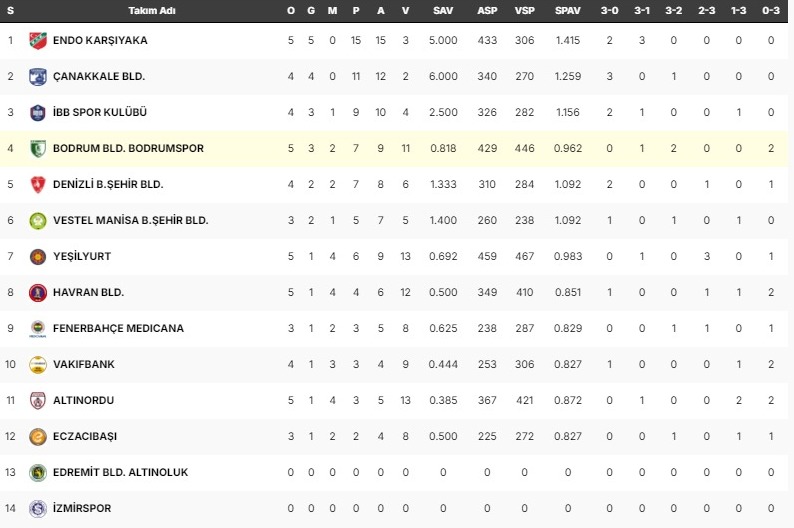 TVF ARABICA COFFEE HOUSE KADINLAR VOLEYBOL 1. LİGİ A GRUBU 5. HAFTA MÜSABAKALARI SONUCU PUAN DURUMUNDA ÇANAKKALE BELEDİYESPOR MAÇ EKSİĞİYLE İKİNCİ SIRADA YER ALMAKTADIR
