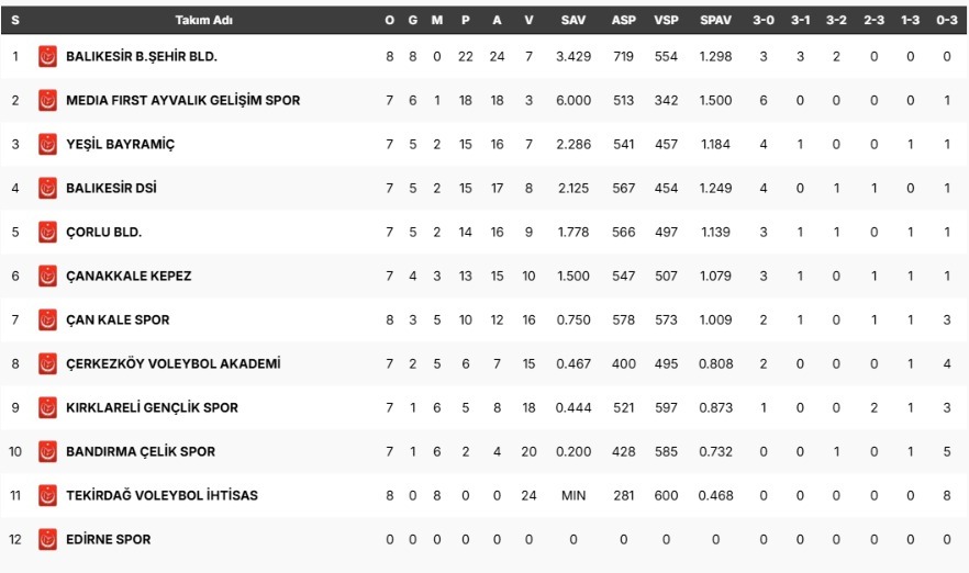 TVF KADINLAR VOLEYBOL 2.LİGİ 5.GRUP, 8. HAFTA MÜSABAKALARI SONUCUNDA , YEŞİL BAYRAMİÇSPOR TAKIMIMIZ 3. SIRADA, KEPEZSPOR TAKIMIMIZ 6. SIRADA, ÇAN KALESPOR TAKIMIMIZ 7. SIRADA YER ALMAKTADIR
