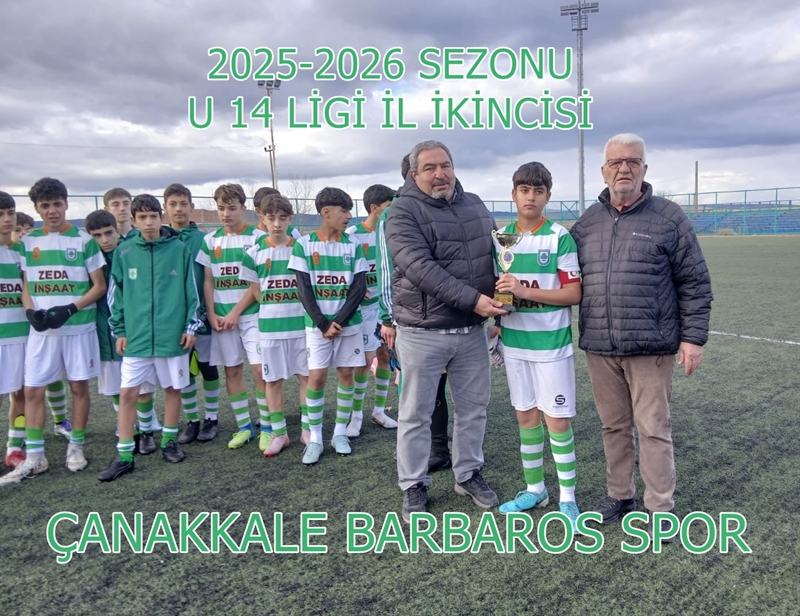Çanakkale Barbaros Spor 2025-2026 Sezonu U 14 Ligi İl İkincisi oldu.